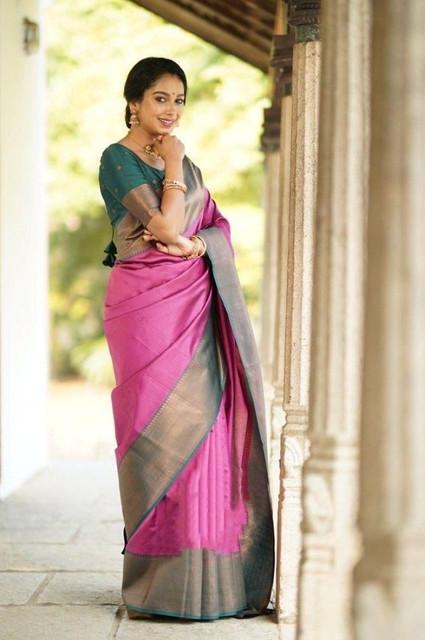 Generic Women's Soft Lichi Silk Printed Saree With Unstitched Blouse 5.5Mtr (Pink)