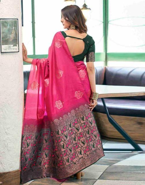 Generic Women's Soft Lichi Silk Printed Saree With Unstitched Blouse 5.5Mtr (Pink)