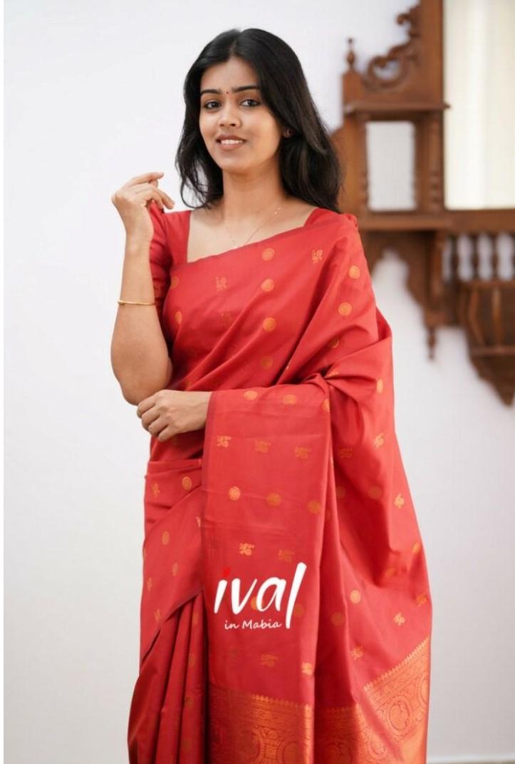 Generic Women's Soft Lichi Silk Printed Saree With Unstitched Blouse 5.5Mtr (Red)