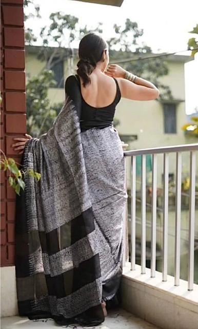 Generic Women's Soft Lilan Printed Saree With Unstitched Blouse 5.5Mtr (Black)