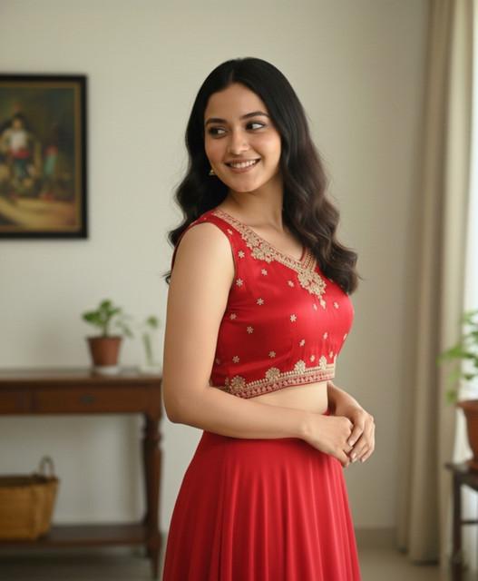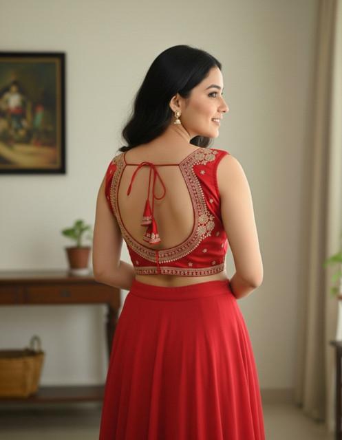 Generic Women's Zimmi Choo Embroidered V-Neck Padded Blouse (Red 38 Ready (Self Alterable 36–40)
