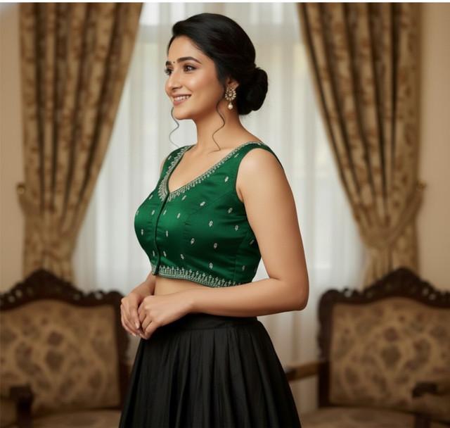 Generic Women's Zimmi Choo Sequin Work V-Neck Padded Blouse (Green 38 Ready (Self Alterable 36–40)