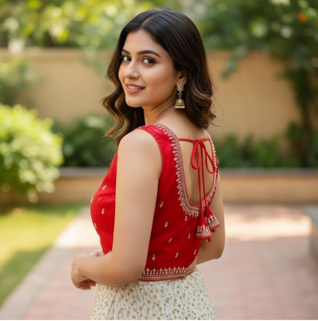 Generic Women's Zimmi Choo Sequin Work V-Neck Padded Blouse (Red 38 Ready (Self Alterable 36–40)