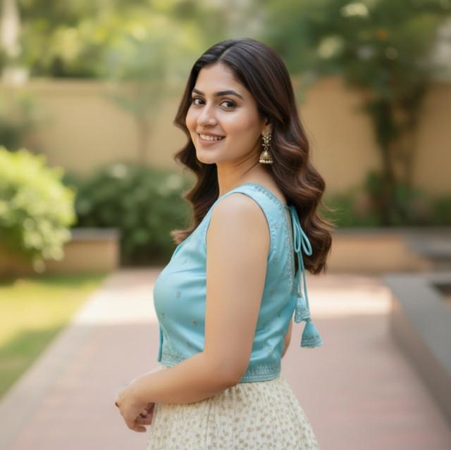 Generic Women's Zimmi Choo Sequin Work V-Neck Padded Blouse (Sky Blue 38 Ready (Self Alterable 36–40)