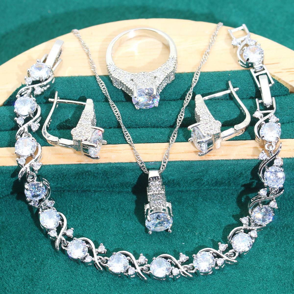 Bridal Zircon Chain Necklace Bracelet Earrings Four-piece Ring Set Pack Wedding Dress Accessories